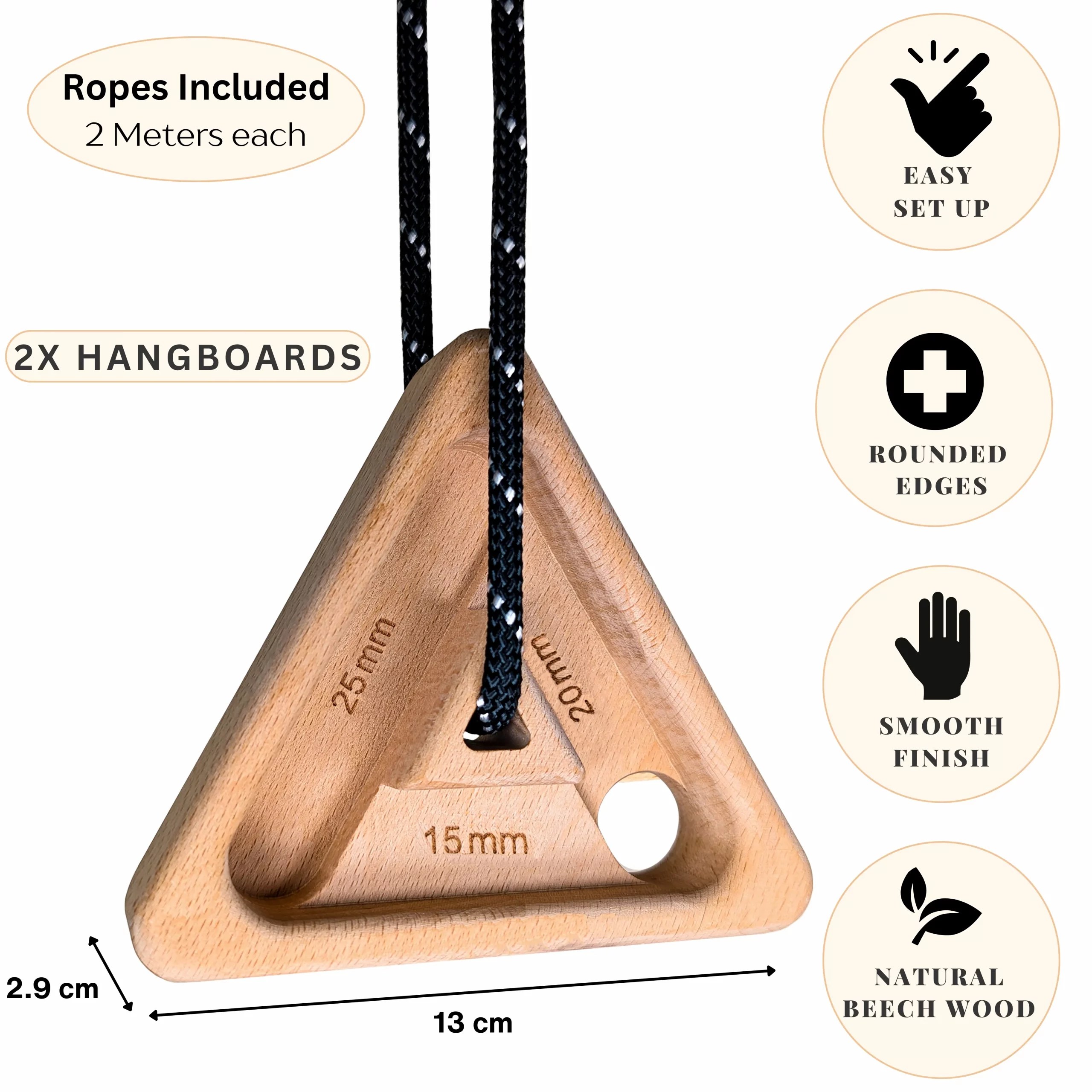 2x Hangboard Triangles, 2x Ropes, 4x Rubber Plates, Custom Training plan and Set Up Instructions